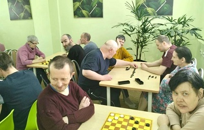 Специалисты филиала "Богородский" социального дома "Вешняки" регулярно проводят дружеские соревнования для жителей. Инструктор по трудовой терапии Татьяна Бондарева акцентирует, что такие состязания отличаются от обычных: на них не бывает жеребьевок, выбывших игроков и победителей, а каждый участник может сам выбрать соперника.