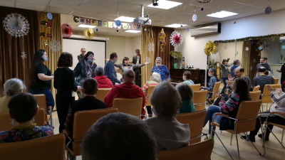 В канун новогоднего праздника наши проживающие вспоминали детские забавы: вырезали кружевные снежинки, наряжали елки и на мастер-классе от команды АНО "Русский дом" учились наряжаться сами, готовили милые сувениры своими руками и дарили их близким людям. Актеры нашей театральной студии подарили всем проживающим кукольный спектакль " Приключения Снеговика-почтовика". Солисты нашей любимой вокальной студии "Без границ"- Елена Сергиевская, Сергей Никитин и Василий Сизов подарили своим поклонникам роскошный новогодний концерт.