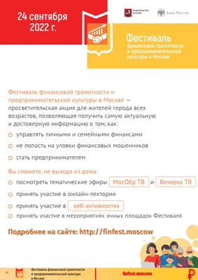 Друзья! Уже в эту субботу состоится Фестиваль финансовой грамотности и предпринимательской культуры в г. Москве.