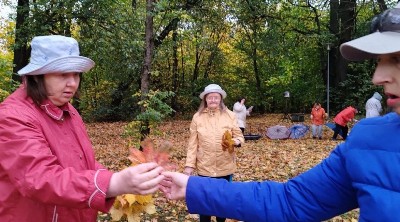 «Мы с участниками нашего тренинга любим менять локации, что дает дополнительные визуальные стимулы. Сейчас такая красивая пора, что просто недопустимо пропускать возможность насладиться ей. На занятии мы перечисляли признаки осени, искали однокоренные слова, вставляли пропущенные буквы и вспоминали пословицы об этом времени года. Всё это сопровождалось радостью и удовольствием от процесса», — рассказывает специалист по социальной реабилитации филиала «Богородский» СД «Вешняки» Татьяна Кусакина.