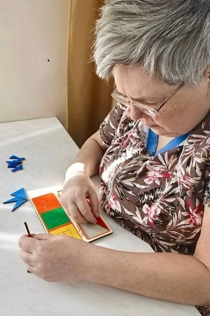Последнее занятие психолог посвятила развитию оптико-пространственных функций. "Нарушения в зрительном узнавании образа и определении его в пространстве очень усложняют повседневную жизнь, ограничивая активность человека", - прокомментировала занятие медицинский психолог филиала Анастасия Черенкова.